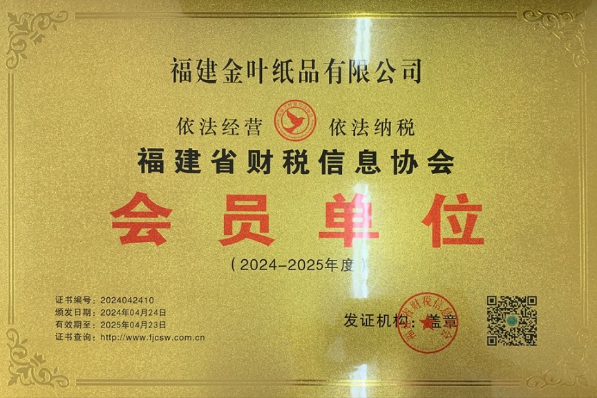 福建金葉紙品有限公司成為福建省財(cái)稅信息協(xié)會(huì)會(huì)員單位